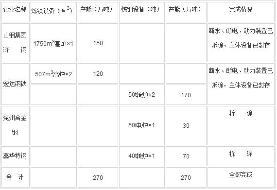 山東省2016年鋼鐵行業(yè)去產(chǎn)能情況表